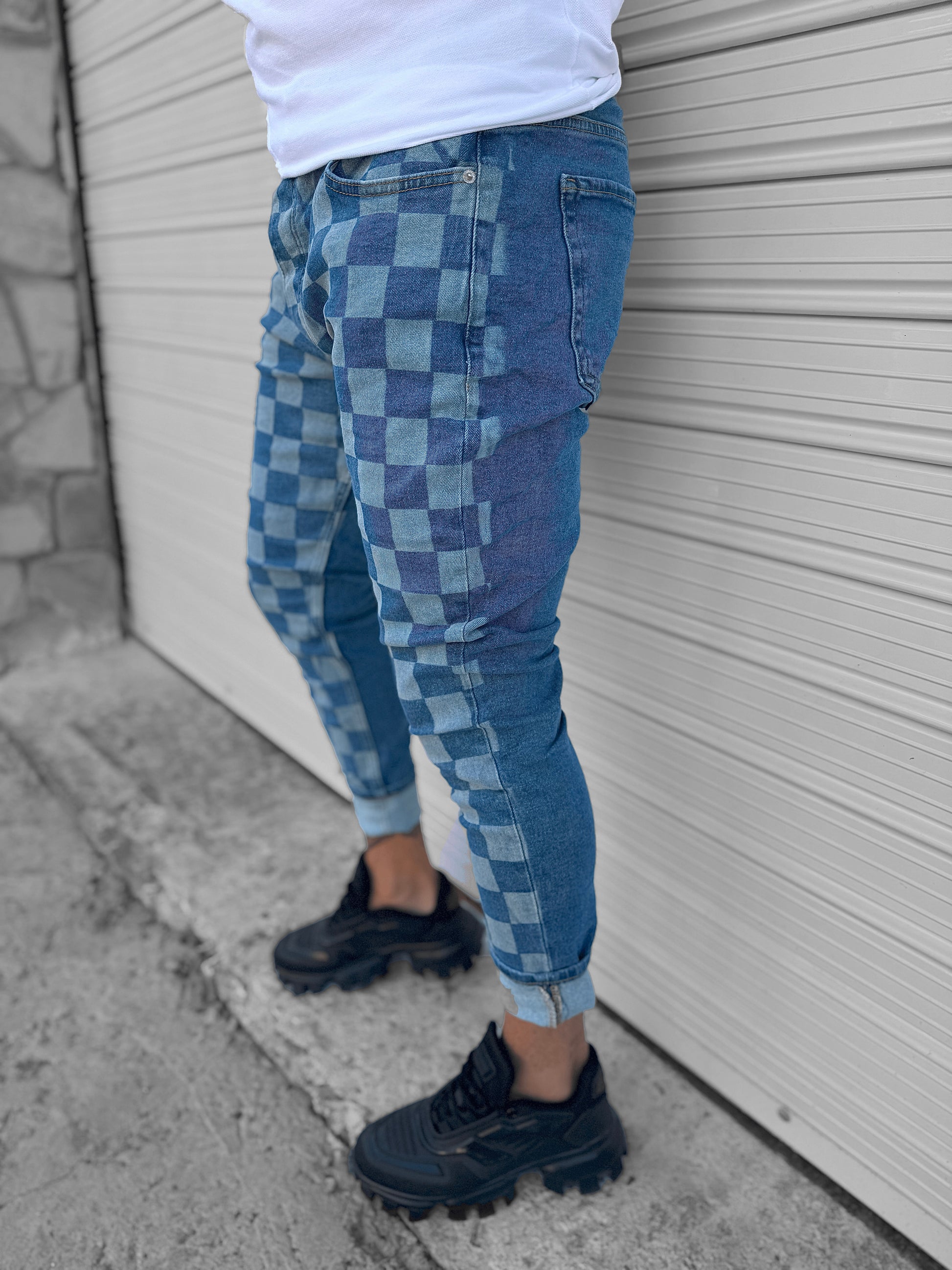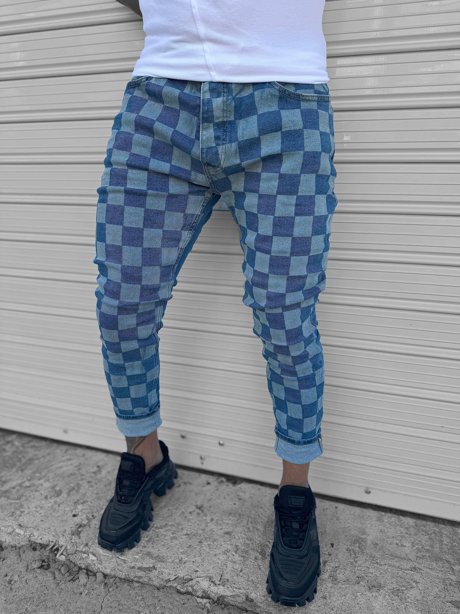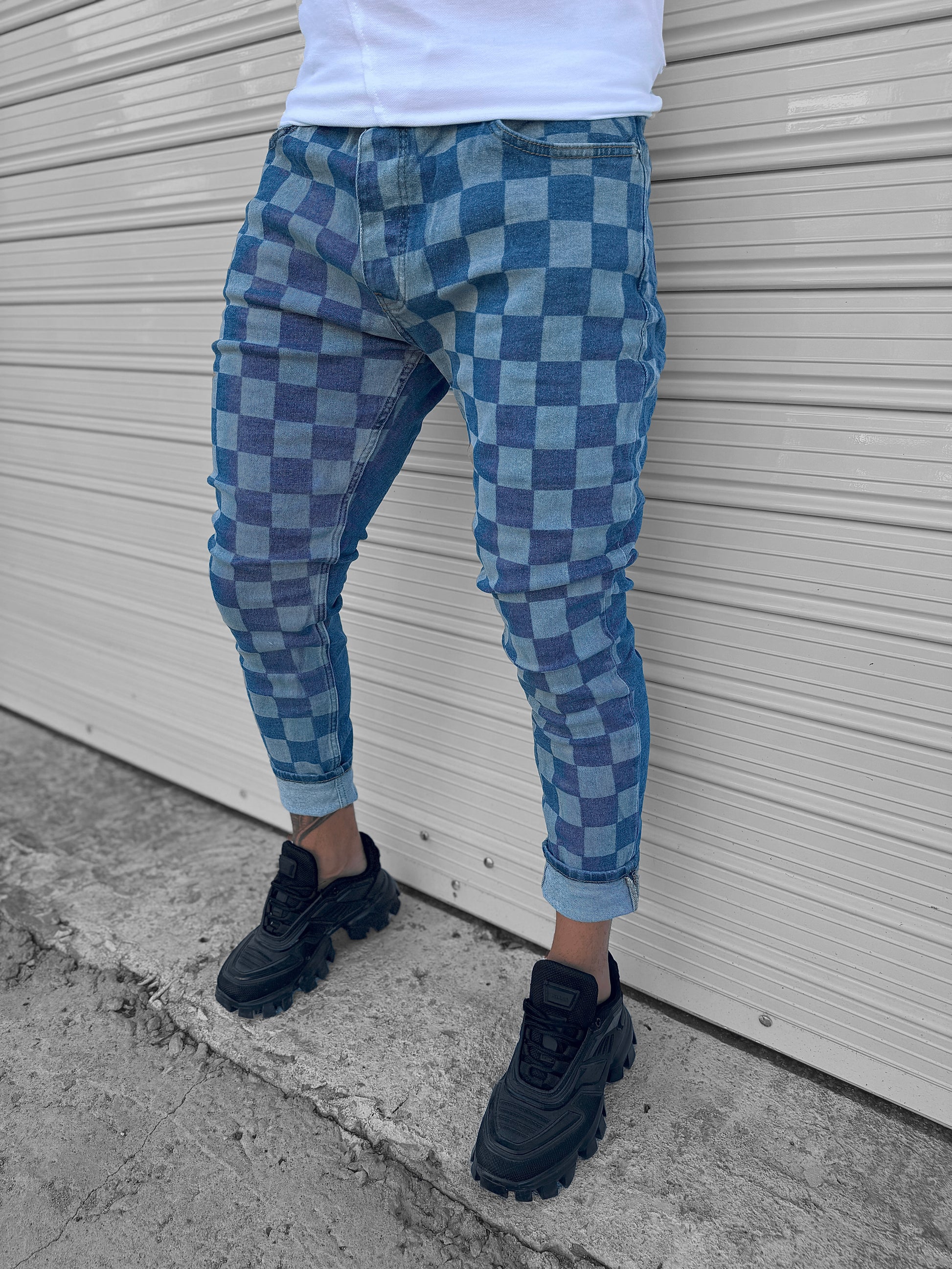 - Сини дънки с квадратчета "𝐁𝐋𝐔𝐄 𝐂𝐇𝐄𝐒𝐒" !