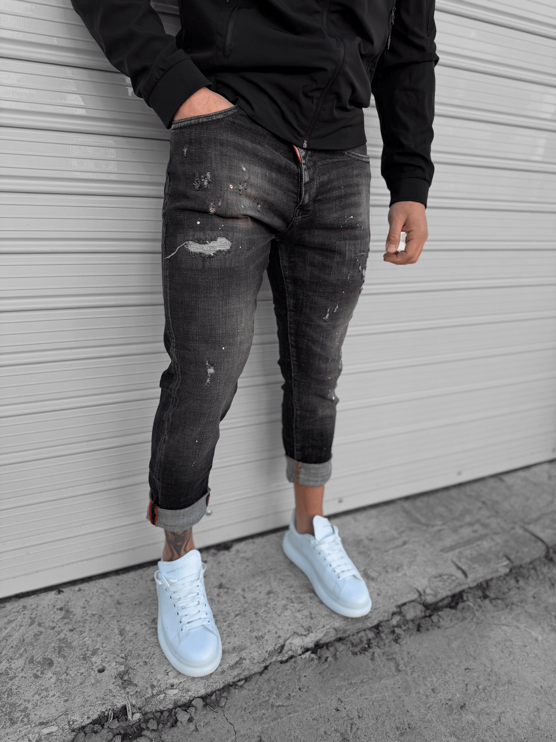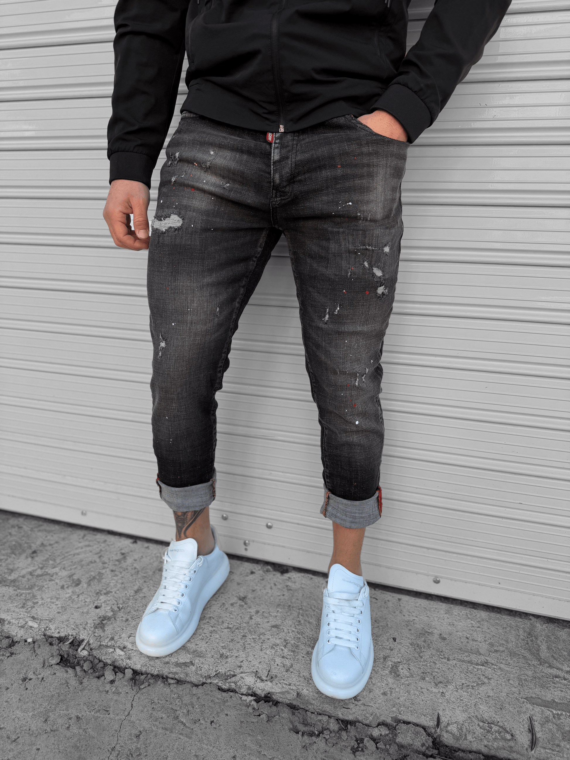 - Дънки с леки пръски боя ! "𝐑𝐄𝐃 𝐃𝐎𝐓"