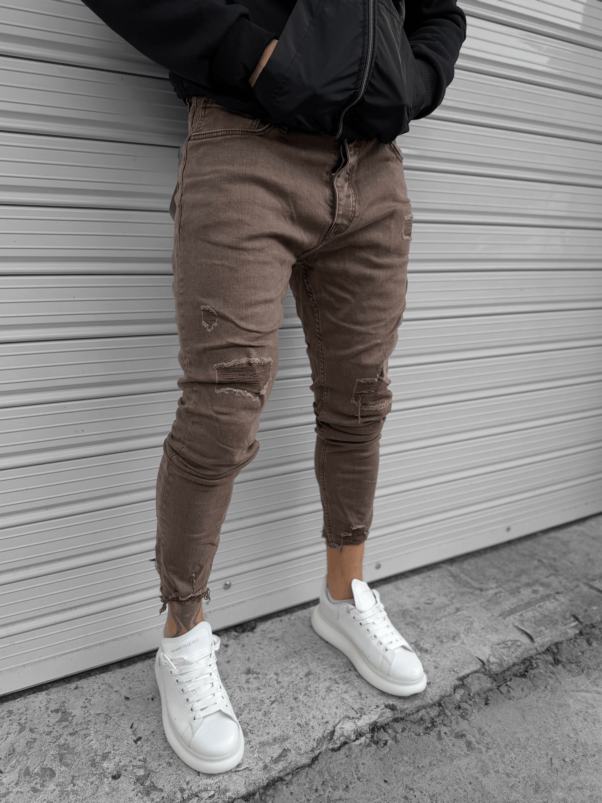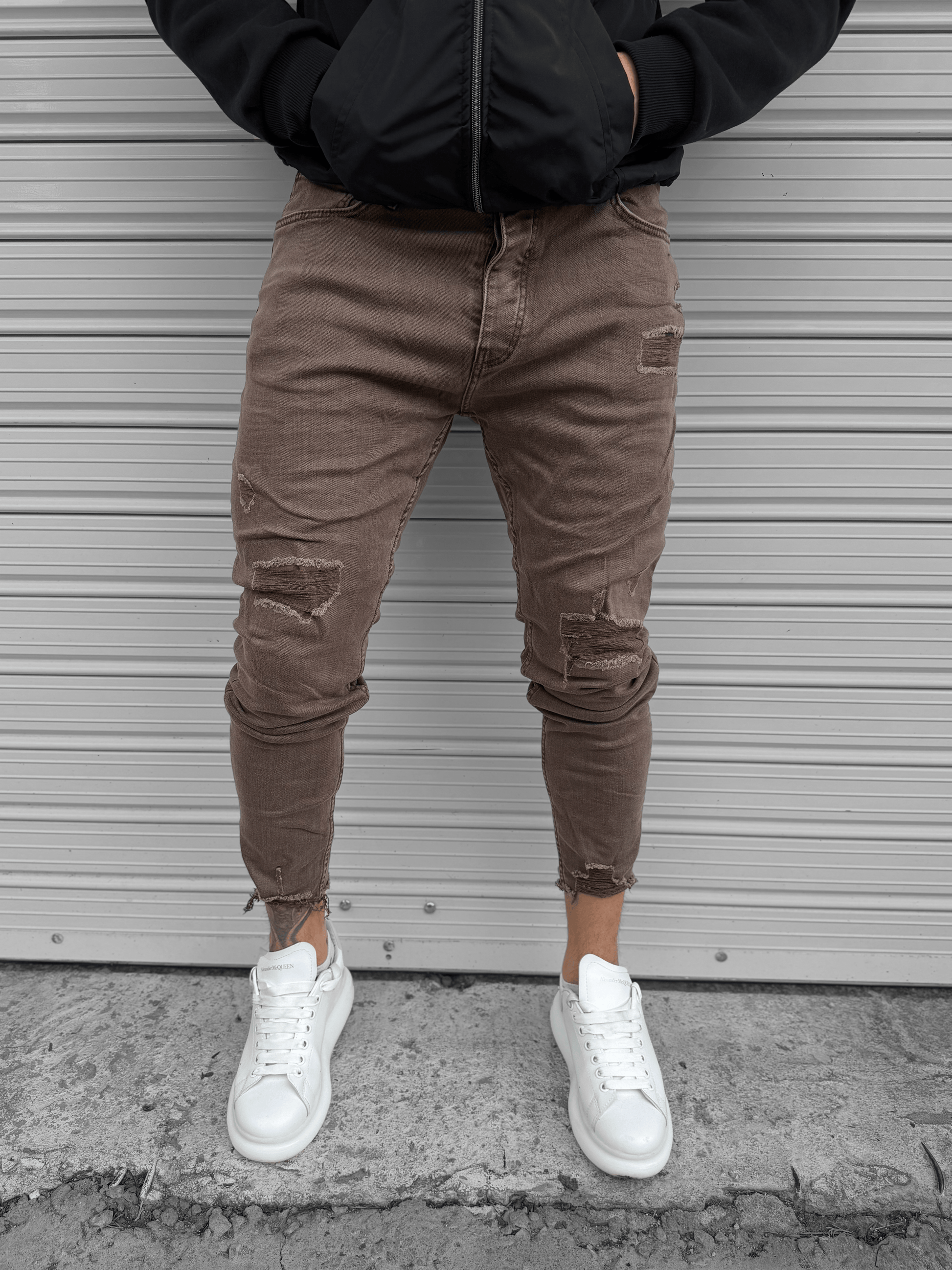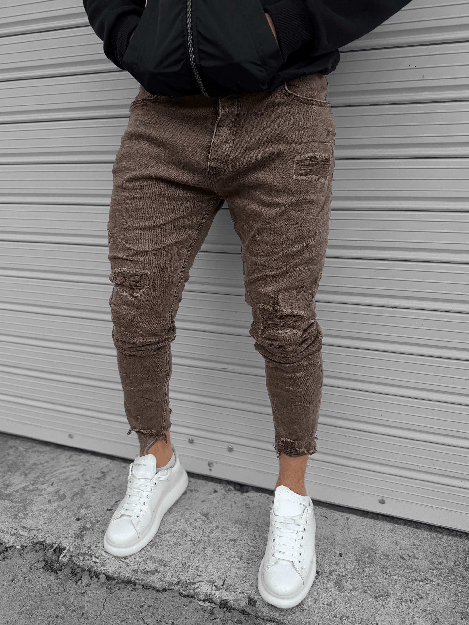 - Кафяви дънки с кръпки и скъсано на глезена "𝐕𝐈𝐍𝐓𝐀𝐆𝐄 𝐁𝐑𝐎𝐖𝐍""