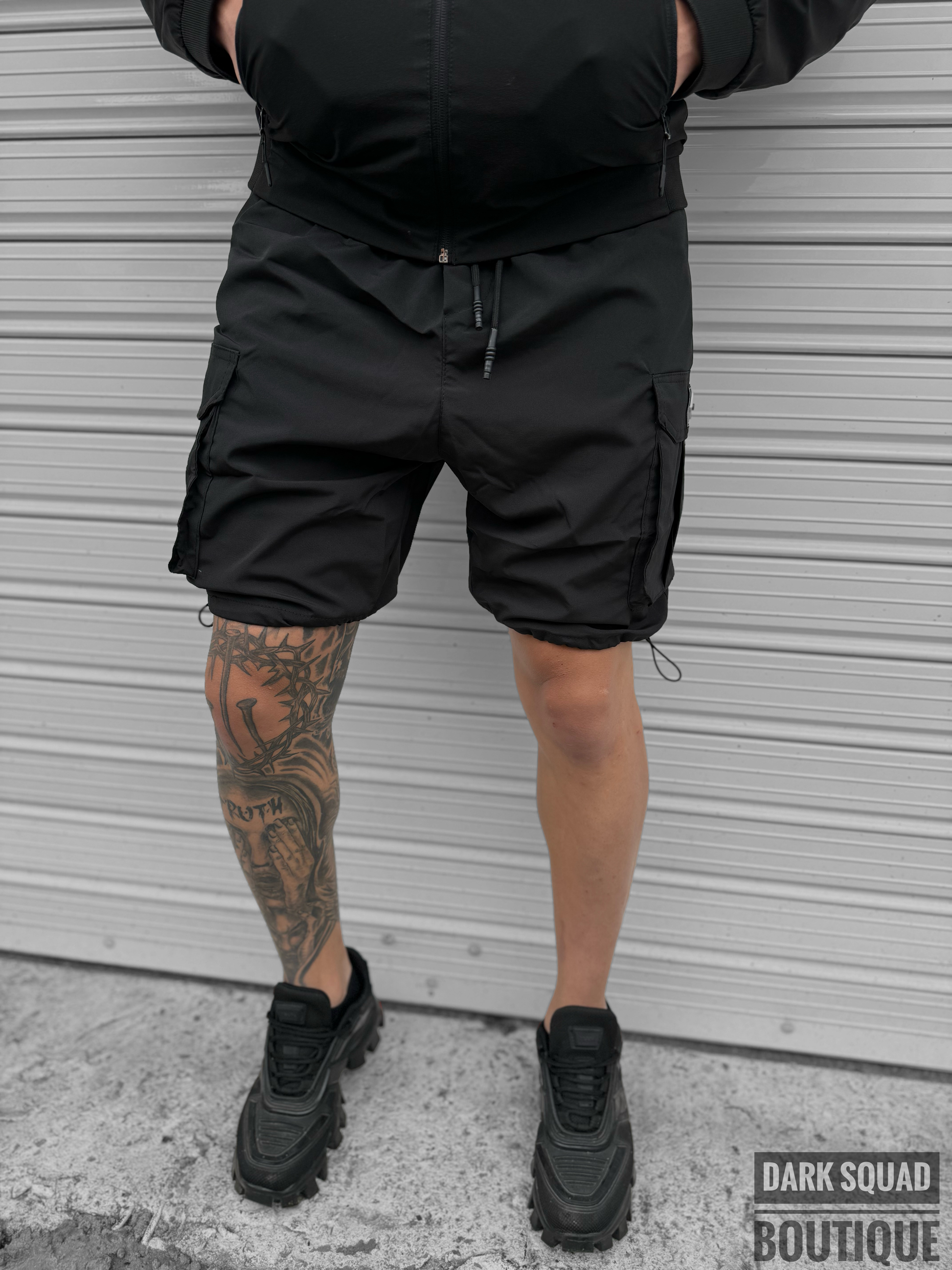 -Черен къс шушляков панталон с ластици за стягане и странични джобове !