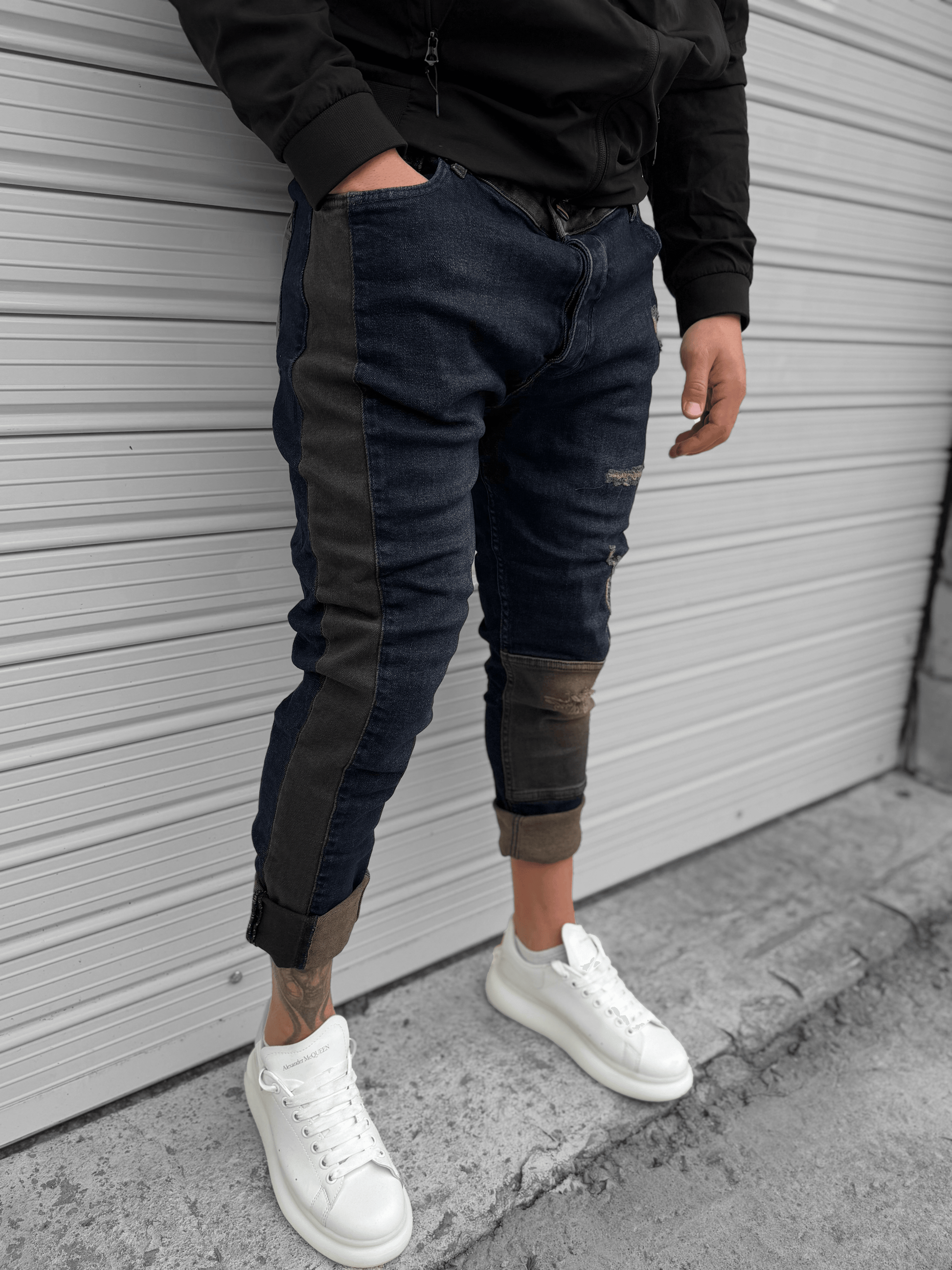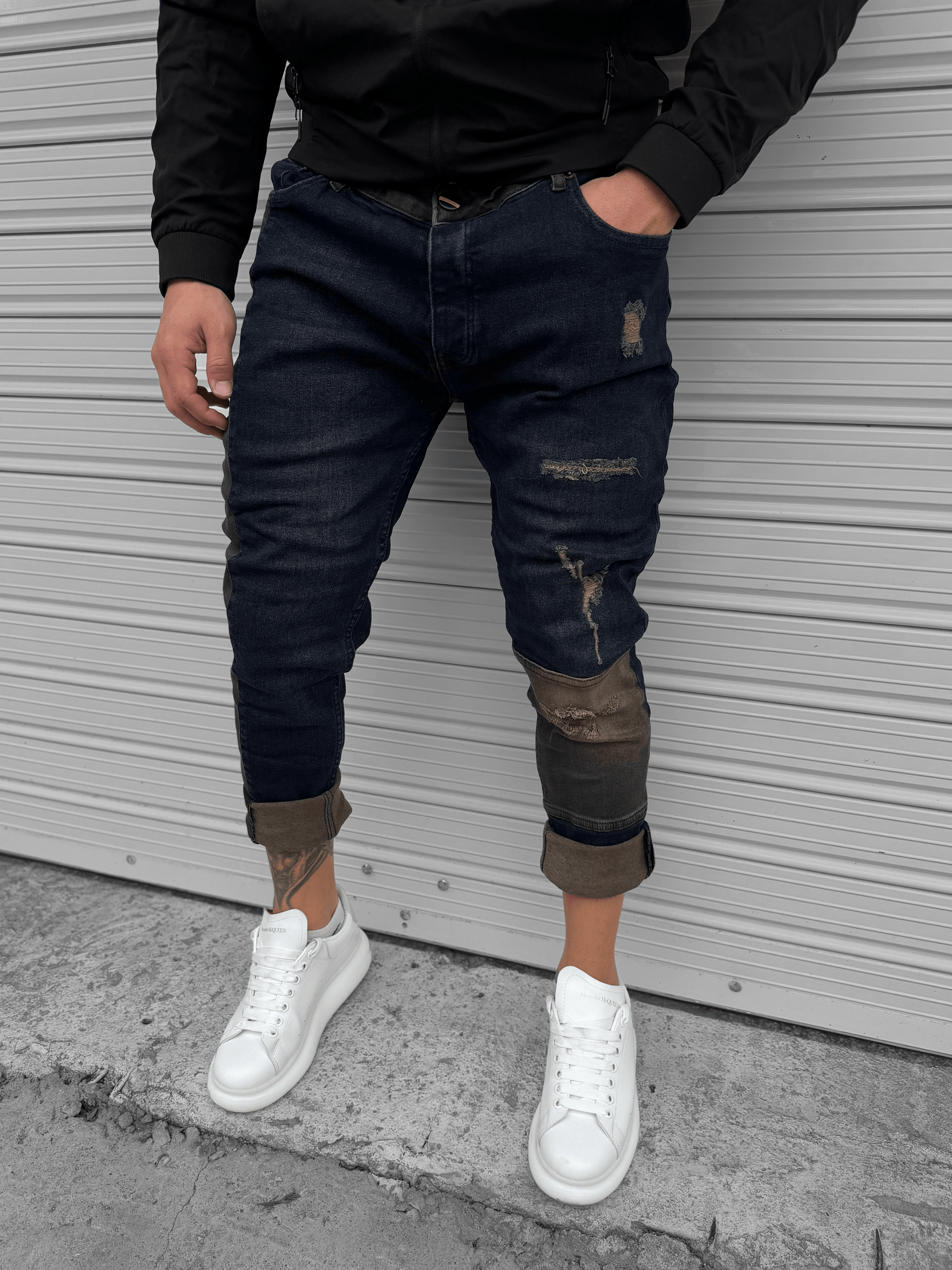 Тъмно Сини Дънки с Кафяви Детайли "𝐁𝐑𝐎𝐖𝐍 𝐏𝐑𝐈𝐃𝐄"