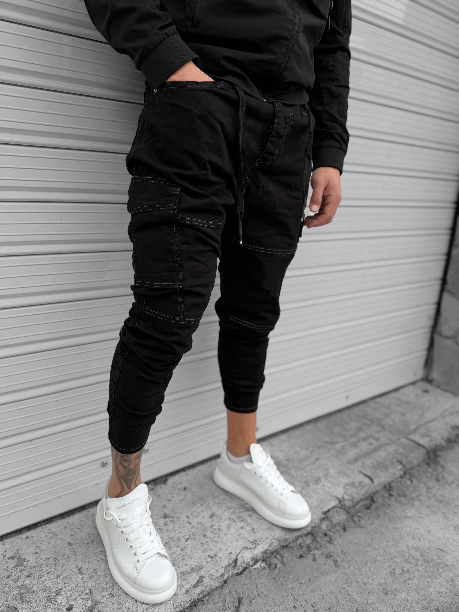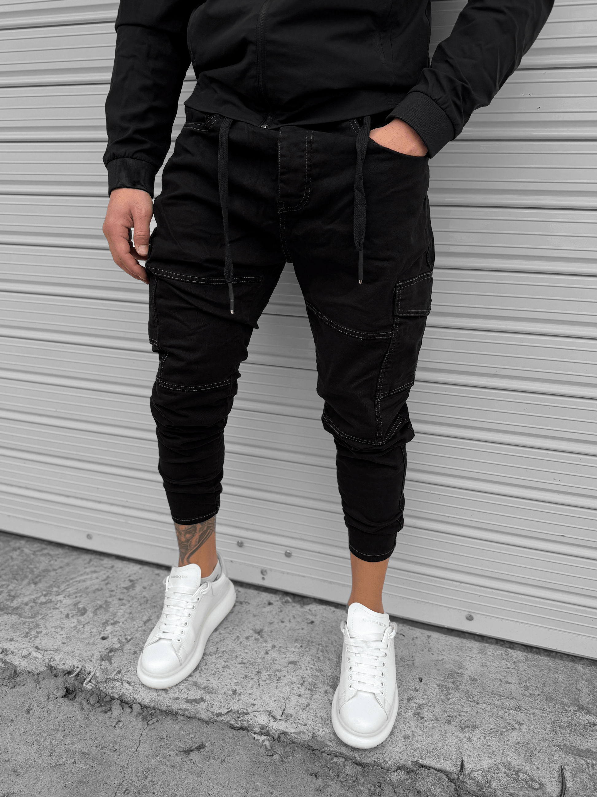 - Черен дънков карго панталон със странични джобове "𝐁𝐋𝐀𝐂𝐊 𝐒𝐓𝐑𝐄𝐄𝐓""