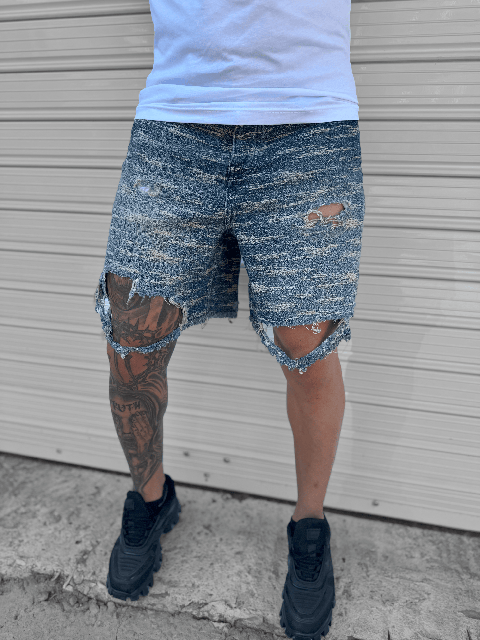 Сини Къси Скъсани Дънки "𝐅𝐀𝐃𝐄"